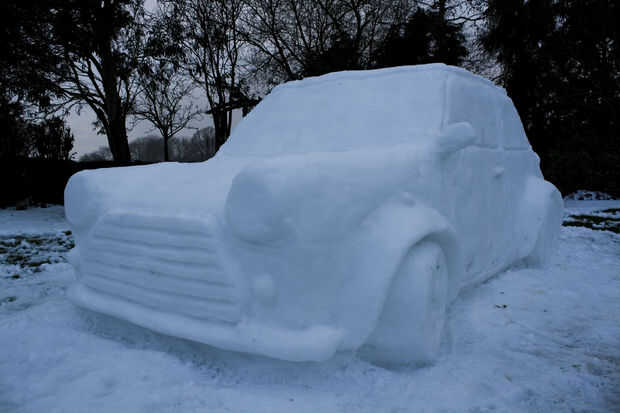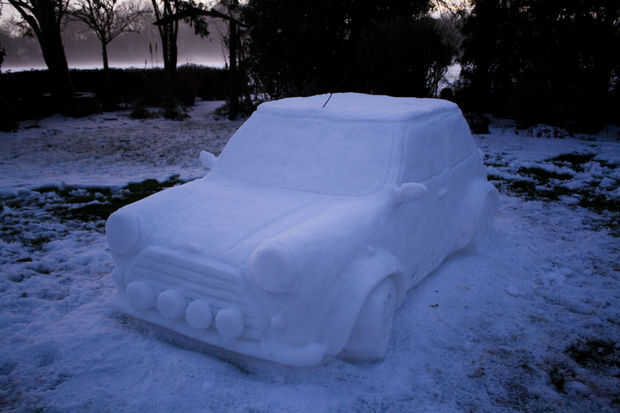 - De una capa de nieve de carretilla terrones por que el frente fue construido simplemente mano. (Conozco la forma de un mini muy bien, otra vez trabajando desde la tapa hacia abajo)