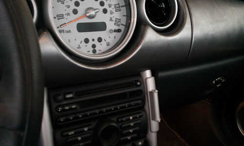 El dueño anterior de mi MINI fuera o logró romper, el sostenedor de taza flotante que se monta en la columna del centro dejando solo al Monte. Por ello es conveniente ubicación y facilidad de integración que decidí usarlo como la base para mi dock.