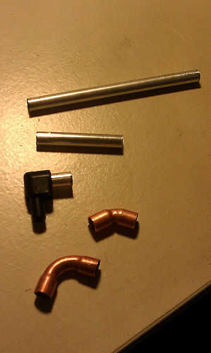 Empalme de ángulo de 45 ° y 90 ° ángulo común . Sólo he podido encontrar en cobre en la ferretería local, pero si usted puede encontrar el aluminio debe ser más barato. Dependiendo de cómo usted planea conectarlo a tu consola puede que necesite un ángulo de 45.