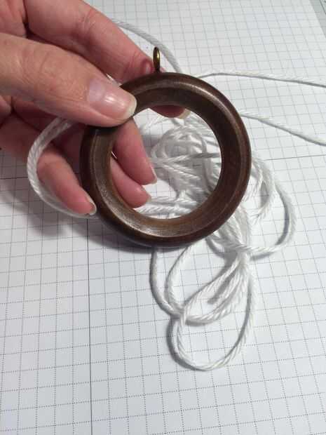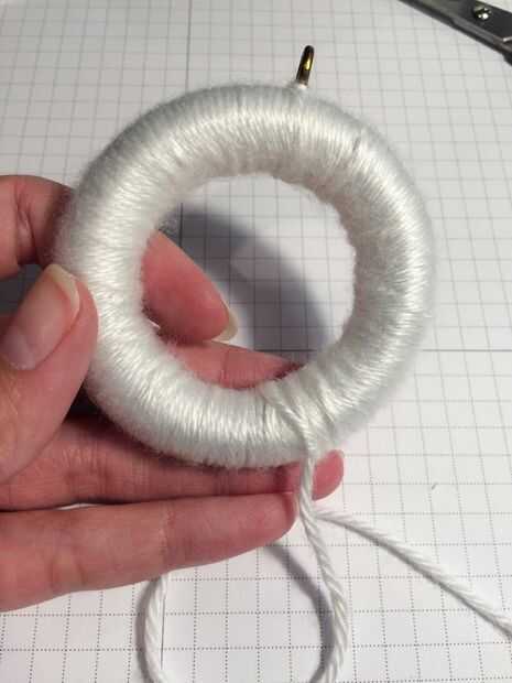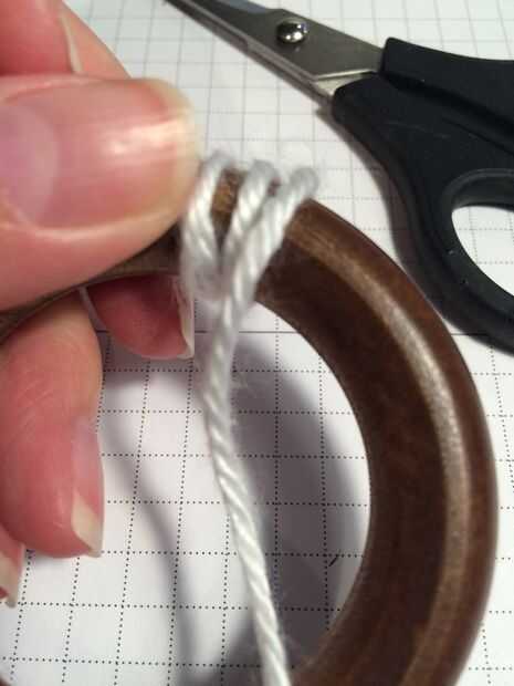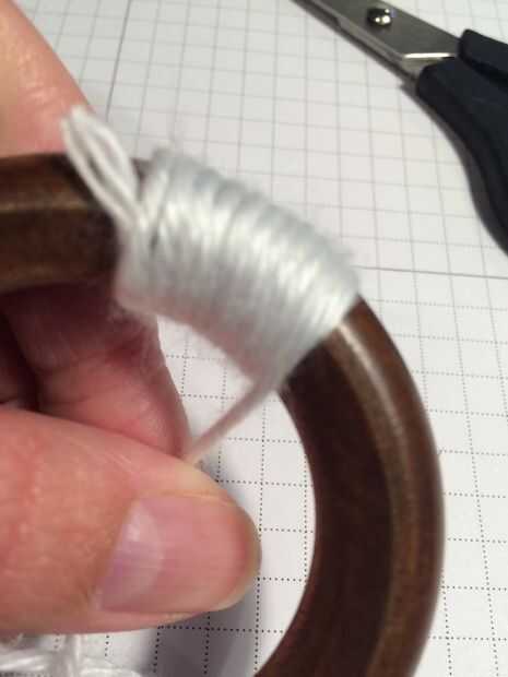 - Comience con el extremo de su hilo y empezar a torcer alrededor del anillo