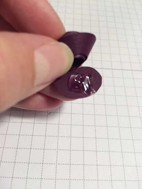 Una vez has rizado el papel en el centro de la roseta, colocar pegamento y presiona su rosetón en él.