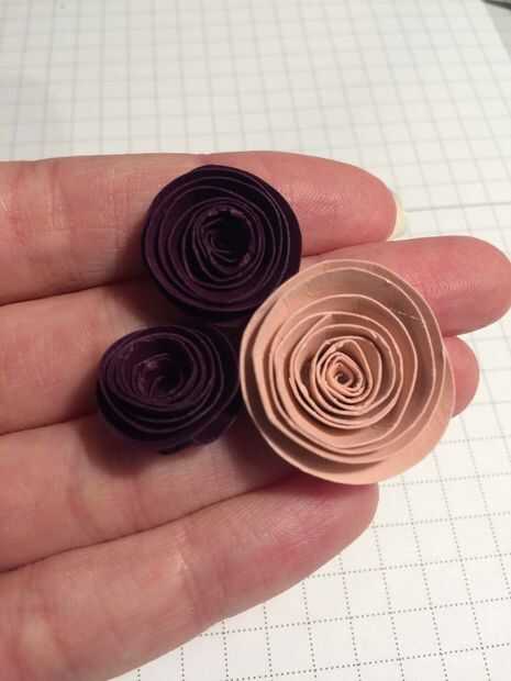 Si usted quiere una roseta pequeña y estrecha (para simular un nuevo capullo floreciendo), mantenga su enrollamiento apretado como está pegado abajo. Si quieres una más abierta y más grande, que el papel rizado desentrañar un poco antes de que se adhiera. Puedes ver que he creado 3 rosetas de tamaño diferentes al hacerlo.