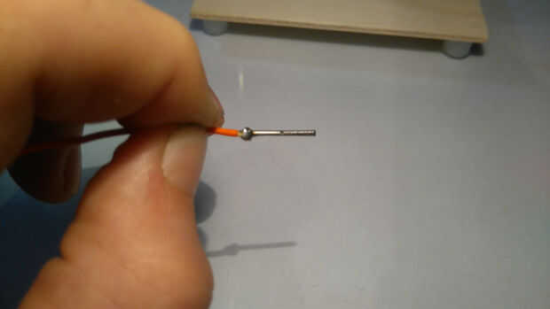 Tomar el alambre de la resistencia, hacer un lazo alrededor de la uña y trence los extremos. Si desea puede hacer una arboleda pequeña para evitar que se resbale todo.