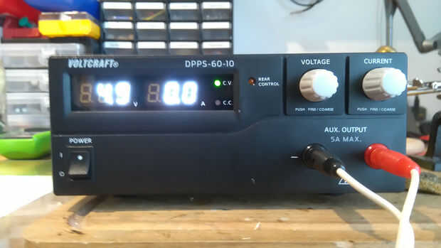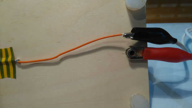 Conectar el tubo de metal y el cable de alambre titular de la fuente de alimentación (en mi caso una fuente de alimentación superior de banco)