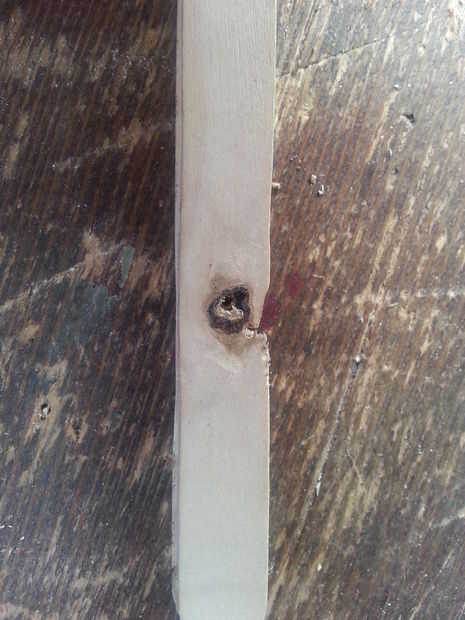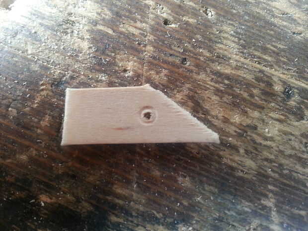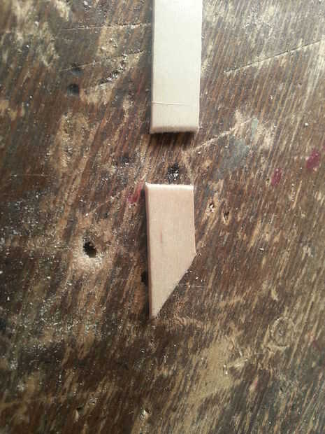 Cortar un palito con no termina en un cuarto y corte un ángulo y perfore un agujero de cerca de cima y taladro en stock en ballesta, como se muestra en la imagen.