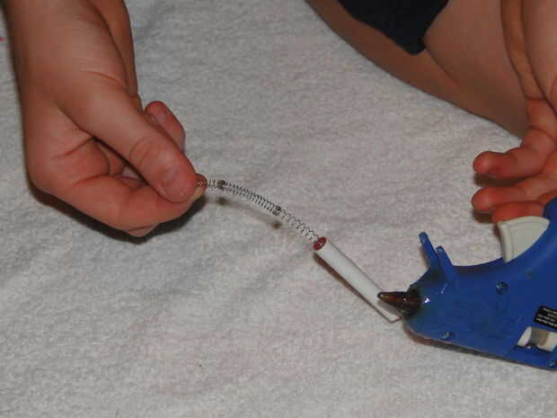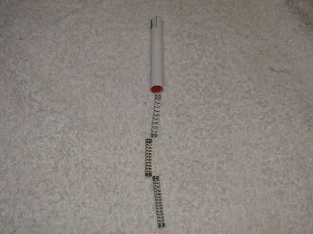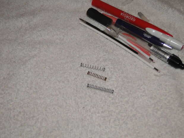 -Abrir las plumas y salir los resortes y cortar un pedazo pequeño del soporte de tinta de 1 y 1/2 pulgadas de largo -Caliente pegar juntos en este orden: primavera, primavera, primavera--INKHOLDER.