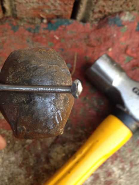 El en plano de la uña a la misma mi tamaño en la ONU martillado parte de la uña del martillo.