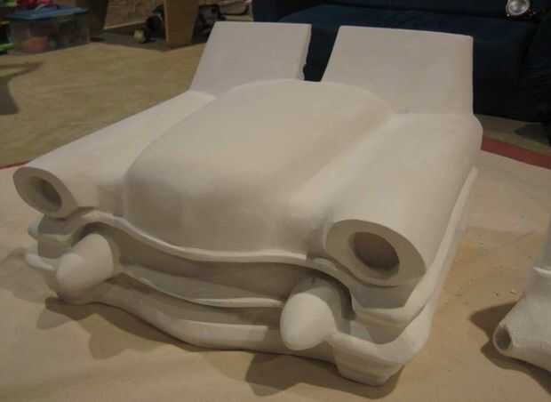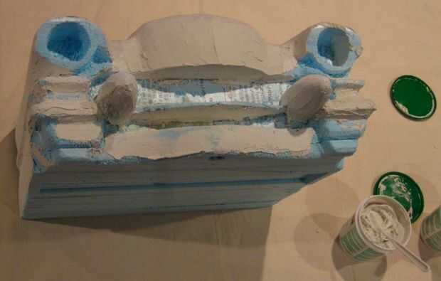 Estos siete fotografías ilustran la aplicación de yeso multiuso conjunto compuesto. Opté por usar este material para obtener una superficie lisa final en la carrocería. Yo sabía que el compuesto se pegaría a la espuma, y también sabía que con polvillo y continuo podría obtener la textura deseada de la superficie y detalles que yo buscaba para lograr. Este paso tuvo mucho tiempo con las muchas aplicaciones entre enarenado. Compruebe una vez más, las imágenes para más detalles...
