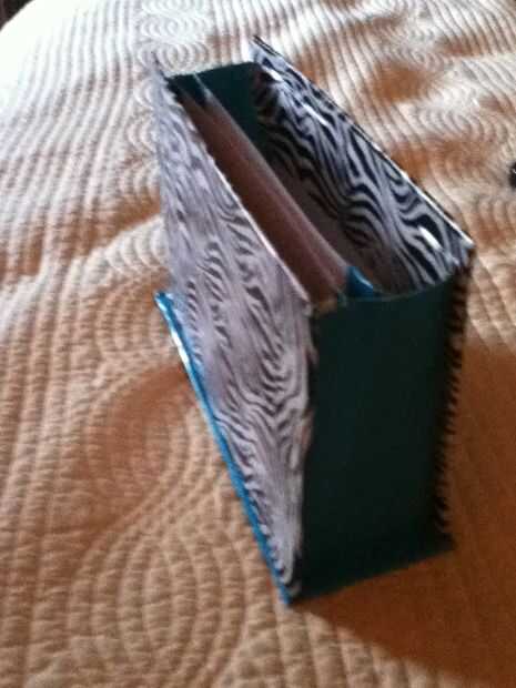 Use cinta para fijar los lados a la unidad de organización de la parte superior. Luego pegamento el interior del pato había grabado en cartón de la cartulina.