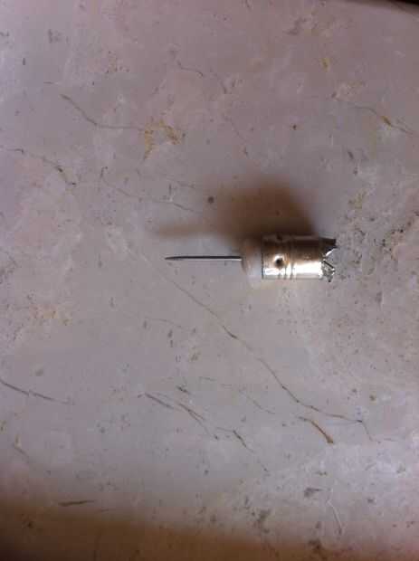 Tomar el pasador fuera el borrador e Inserte el extremo puntiagudo por la parte que fue unida al lápiz. Ahora se centra su pin y estás listo para poner la cola en.