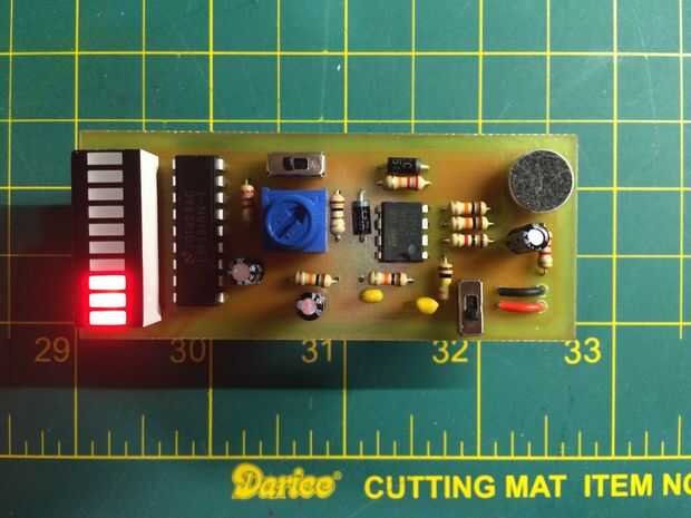 El desafío adicional es que la salida del micrófono es tan pequeño que debe ser impulsado y tratados antes de enviar al LM3916, que me dio una excusa a la práctica trabajando con op-amps.