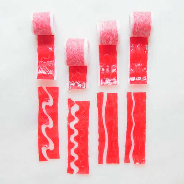 alrededor de un palillo de dientes. "El pie" se vende en tiendas de comestibles cerca de las barras de fruta viene en muchos colores (y "sabores") y también, tiene un montón de variaciones de perforación en cada paquete realmente varían un poco.