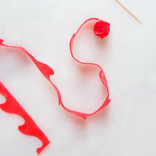 Después de que la rosa se pone en marcha, retire el palillo de dientes y sólo mantener rodando la tira.