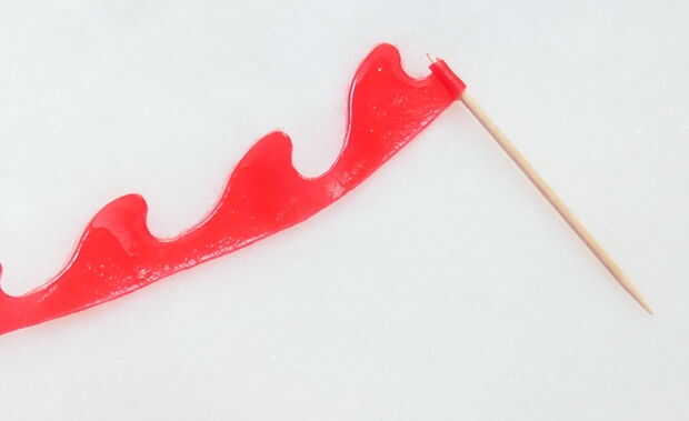 Rodillo uno de los extremos de la tira alrededor de la punta de un palillo de dientes, luego seguir a la banda con el borde recto alineado.