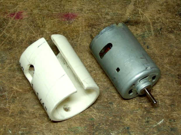 Comenzar con un 2 en 1-1/4" schedule 40 PVC tubo. Corte un 1/4 de ancho raja a lo largo con una sierra para metales. El motor es un deslizable muy apretado en el tubo.