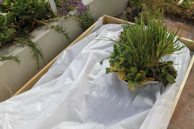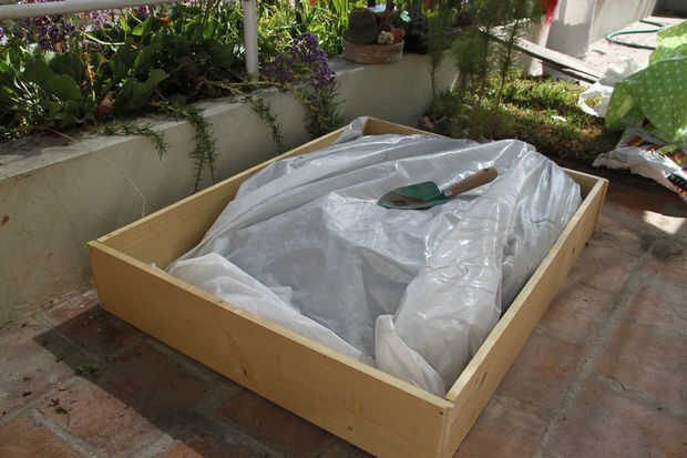Paso 2: El plástico del rodillo dentro del marco y llenarlo con tierra