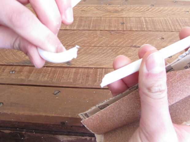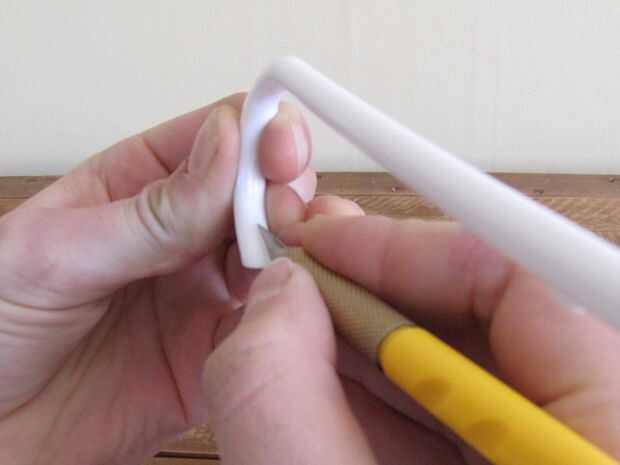 Utilice su cuchillo del exacto o cuchillo hacer cuidadosamente un corte en la parte superior de la pieza final. Este hendidura se utilizará para el final de la tachuela en que resistirá todo el asunto. Si tienes una tachuela con una cabeza plana (como un clavo común) debe hacer una ranura extra para la cabeza para sentarse comodamente en.