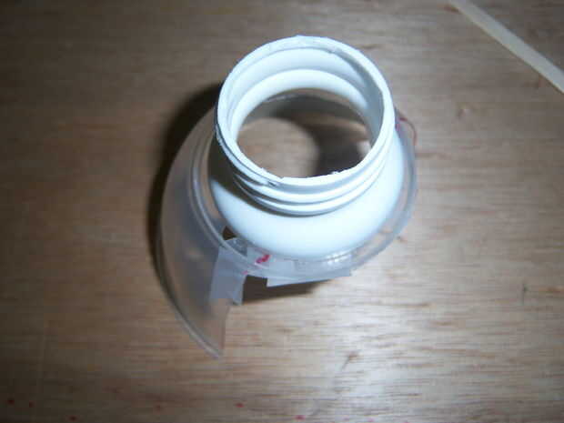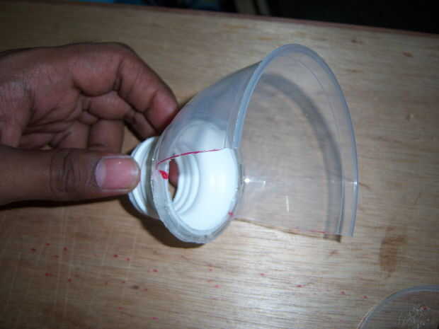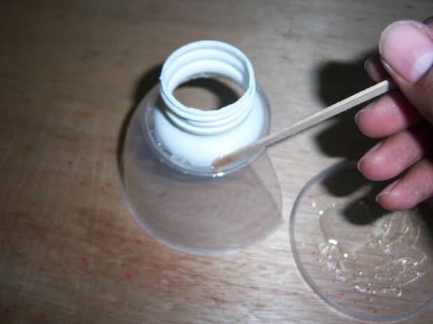 Ahora usando epoxi o pegamento caliente o pegamento, pegar el plástico transparente de la botella de plástico.