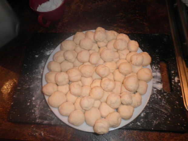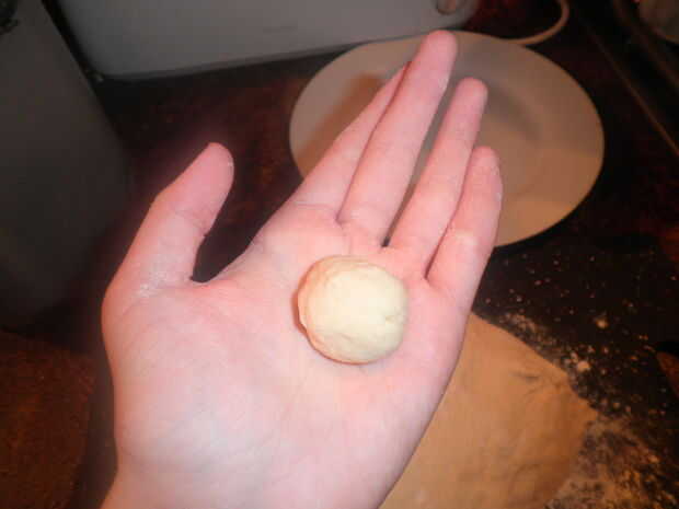 y rodar entre las manos hasta que se convierte en una pequeña y redonda bola