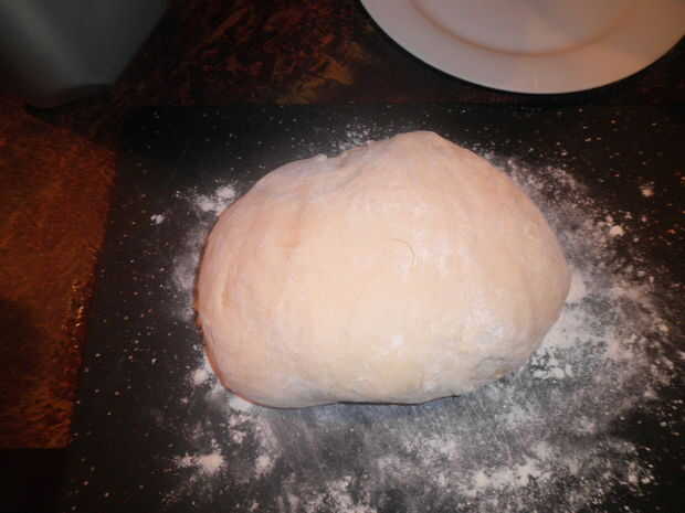 con las manos enharinadas, coloque la masa en la tabla de cortar (amase un poco si es necesario).