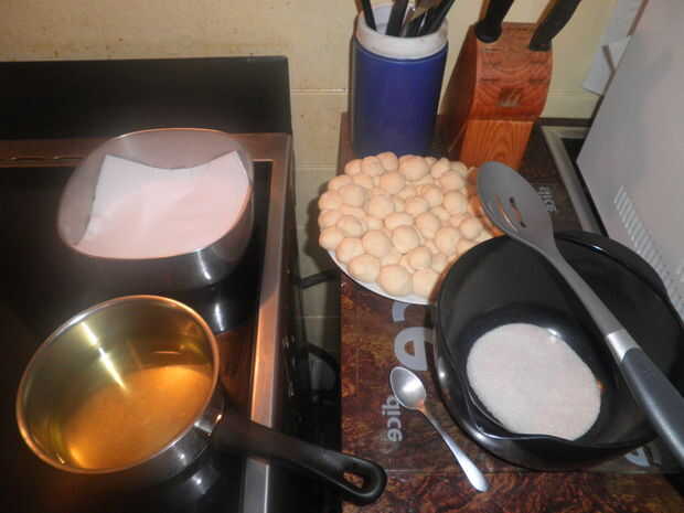 Haz tu plato "buñuelos cocidos" y colóquelo en la estufa
