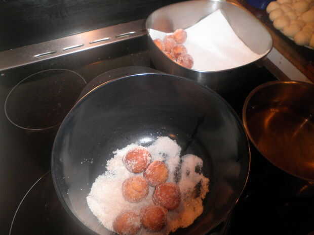 al instante puso en la mezcla de azúcar de canela y la vuelta con una cuchara hasta que estén cubiertas