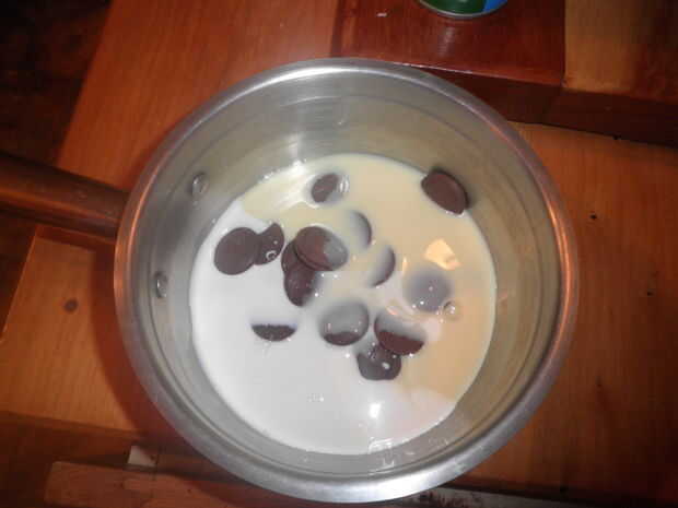 combinar chocolate, leche condensada y leche en una cacerola pequeña y revolver sobre calor bajo hasta que derrita y forme una salsa espesa