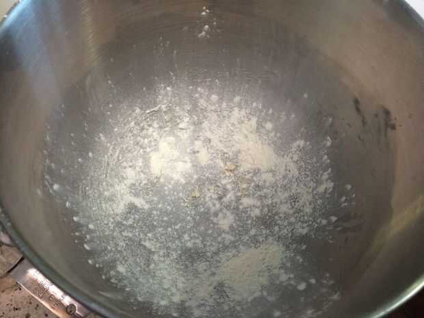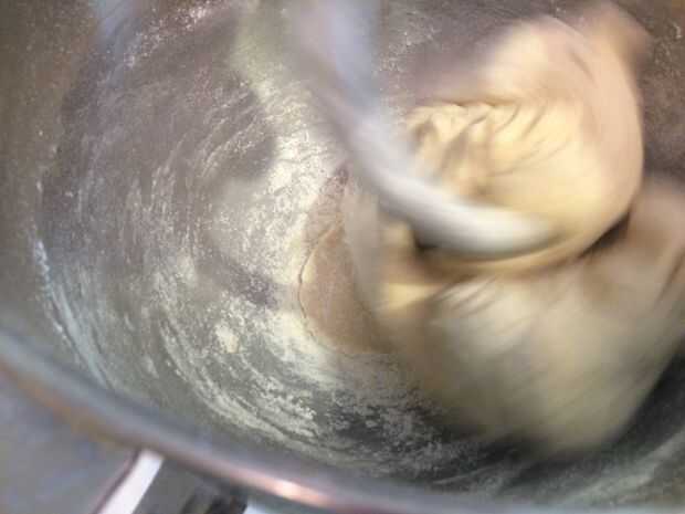 Poner en 1 taza de harina para iniciar, detener al resto de la harina por ahora. Siguiente la temperatura de la leche, la mantequilla blanda, un huevo, sal, una pizca de nuez moscada y canela. Ahora usted puede poner en poco más de harina 1/2 taza a la vez. No todo así que poner una 1/2 taza en y dejar trabajar en un minuto y ver que necesite. Lo que tu viendo si es un recipiente limpio. Como amasando alrededor de mirada a los lados y fondo del recipiente. ¿Es pegajosa la masa? Si es así, entonces tappy toque un poco más harina, hasta que el tazón de fuente es "limpio". Quieres una masa blanda pero no pegajosa.