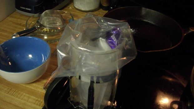 Utilizar una prensa de café para mantener mi Manga pastelera que llene. Algo cilíndrico y hueco debe hacer el truco.