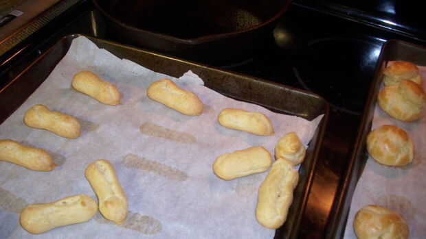 Si las formas están buscando un poco áspero, puede mojar un dedo en el agua y liso abajo largo consejos ni pedacitos de pinchos. Choux es muy indulgente.