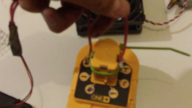 Esto fue hecha con un ultra potente 12 voltios 0.42 ventilador AMP.Paso 1: Cómo se hizo Primero soldar cables a los cables del conector para el ventilador, luego soldadas a los cables de una con la polaridad correcta a un conector hembra estándar de