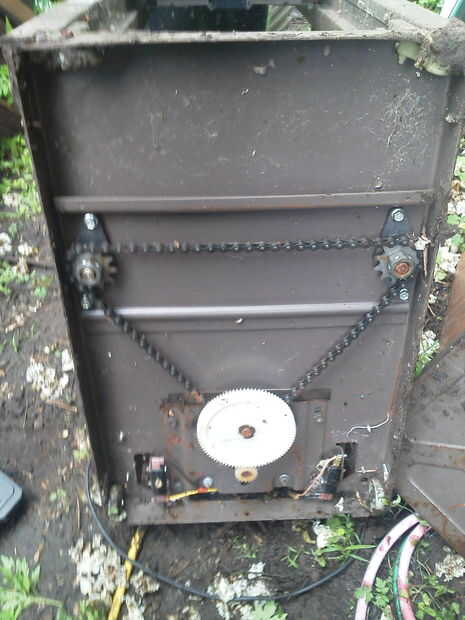 Lo primero que tenía que hacer era calcular hacia fuera cómo funcionaba esta cosa. Lo único que sabía de años anteriores es que tenía una llave y se enciende y compactar la basura. Lo que necesitaba saber era cómo el motor eléctrico acciona la unidad. Como resultado, todos los engranajes fueron en la parte inferior, que se convierte dos varillas roscadas que empuja el émbolo hacia arriba y hacia abajo. Bastante simple, excepto que mi objetivo es no utilizar ninguna electricidad y ejecutarlo manualmente. Creo que el motor está en condiciones de trabajo, pero tal vez voy a guardarlo para otro proyecto como un generador o algo.