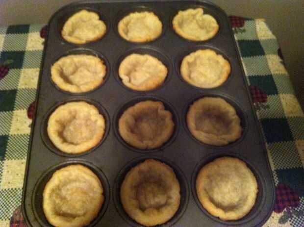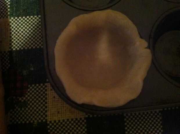 Coloque sus cortezas de pie dentro de las latas de muffins como lo haría una tarta de tamaño normal. Me pareció más fácil de pellizcar o pinzar los bordes mientras que pongo en las latas de muffins. Queremos que se superponen ligeramente como se contraerá hacia abajo.