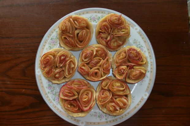 Mediante la combinación de capullos de rosa hechas de rodajas de manzana en una corteza de pastel, soy capaz de crear un hermoso postre que podemos disfrutar tanto en el día de San Valentín!