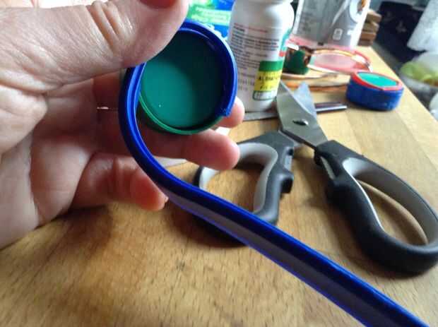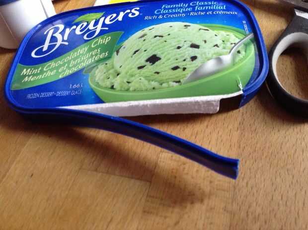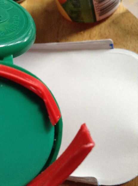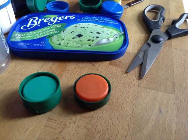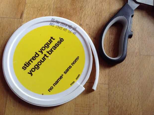 Cortar una tira larga fuera del borde del yogur / tapa del helado.