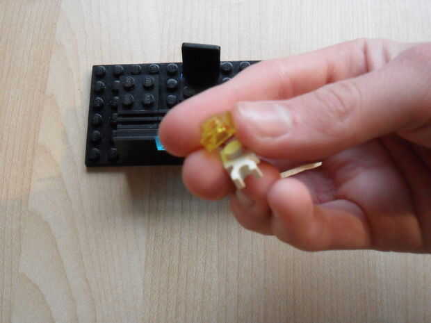 esto es como hacer una mini guitarra acustica de Lego.Paso 1: Las piezas Las piezas necesarias son mencionadas.El color principal que utiliza es naranja, pero puede utilizar cualquier color que desee.Paso 2: El cuello Primero fije la placa de la bisa