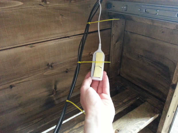 La mayoría de los cables se quedará con la unidad por lo que funcionó perfectamente con ataduras de cremallera. Hay un boquete en la parte trasera del interior de la unidad donde los cables se cuidadosamente escondidos. Mantuvo en su lugar con el Pic de L-brackets. 4 el hub USB se pega muy bien con la cinta de Velcro.