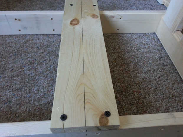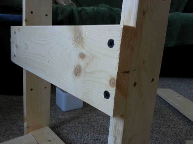 Comience por colocar estas placas a la estantería ensamblada como se muestra en la foto. 2 pre perforado y contador hundido los agujeros para que no sobresalgan las cabezas de los tornillos. Ves 4 tornillos pero la madera partir así que he añadido más tarde. Usted puede comprar una broca de fregadero mostrador especial para ello. No tengo uno así que aproveché una regular broca ligeramente más grande que la cabeza del tornillo. Envuelve cinta alrededor del final a la profundidad que quería el agujero avellanado para ser. Esto funciona pero tienes que tener cuidado. Pino es muy suave y perforé algunos mucho más profundos que pretende como el pedacito de taladro sí mismo tirado en la madera.