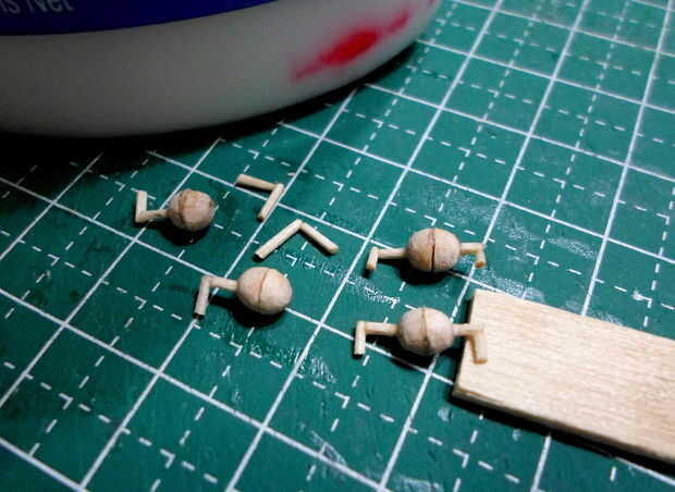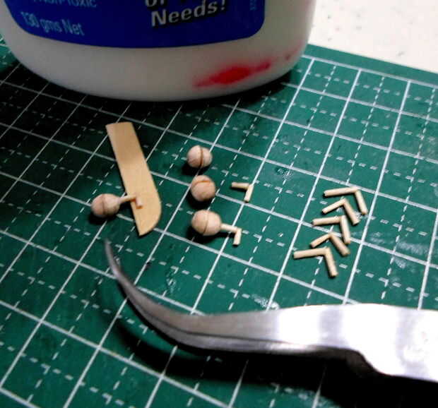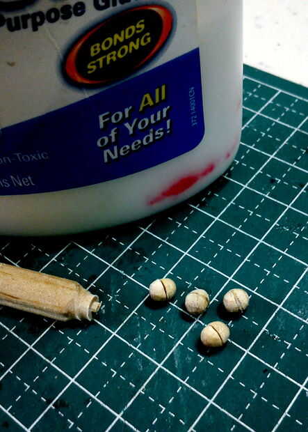 Me pareció más fácil hacer cada tanque de deuterio de 2 dos mitades de cúpulas diminutas pegadas que talla un círculo entero de un agitador de café madera laminado incluso con las dos manos libres con la ayuda de la estación de trabajo Dremel. Con este proceso, que necesitaba hacer 8 ocho cúpulas diminutas para los tanques de 4 cuatro.