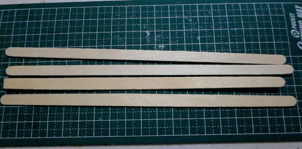 Los cuatro motores principales (acelerador de plasma + inyector de empuje) fueron interconectados en un único ensamblado con 4 cuatro piezas de pequeños tubos de madera. Los tubos fueron hechos de palillos de dientes finos. 2 dos tubos conectan el primer par de motores. El último par se pega entre el primer par con otro conjunto de tubos de 2 dos para completar el ensamble del motor.