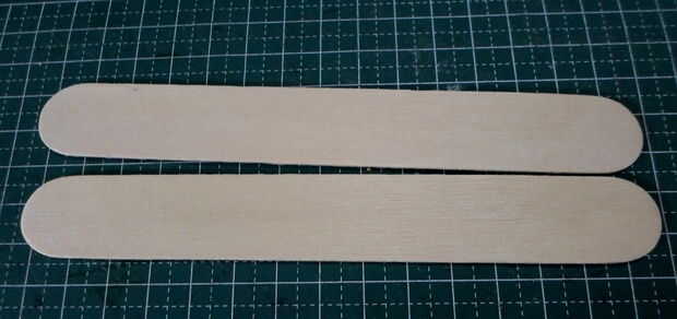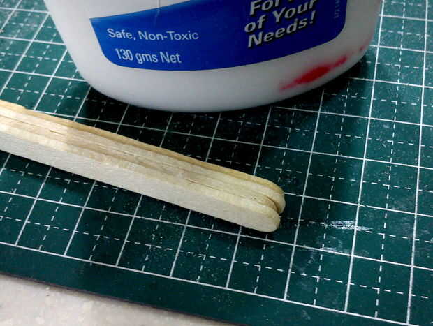 Piezas en forma de ' corazón' de ocho 8 fueron cortadas de palitos bajalengua de tamaño. Seis 6 del 'corazón' en forma de piezas más fueron cortadas para las partes superior e inferior del módulo de comando. Las piezas restantes de 2 dos formaron el centro de la base del módulo de comando.