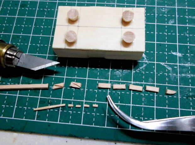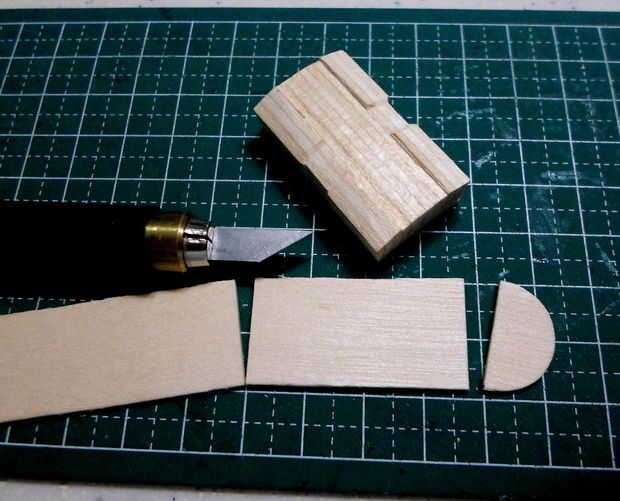 La forma trapezoidal de la vaina fue tallada utilizando un accesorio de lijadora de tambor grueso/fino y acabada con una lijadora de disco montada en una herramienta Dremel de moto. Las muescas en la parte superior la vaina de transporte (para el bastidor de soporte) y las escotillas de atraque (a ambos lados de la vaina) fueron talladas con un pulido accesorio lijadora tambor de piedra y 1/4".
