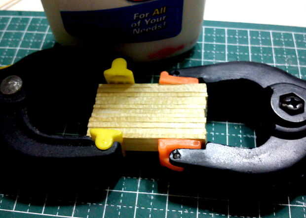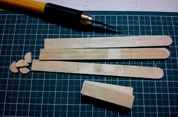 La cápsula de transporte popsicle stick se hizo de 12 doce capas de palitos regulares cortadas para caber el espacio entre los módulos de ingeniería y servicio.