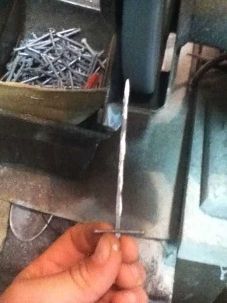 encontré varios instuctables frescos un día a hacer sus propio mini Espadas así que decidí hacer mi propia, im no hacer un instuctable completo si usted quiere uno por favor comentario.Paso 1: Básicamente tomé un 3 y un clavo de media pulgada y golpe