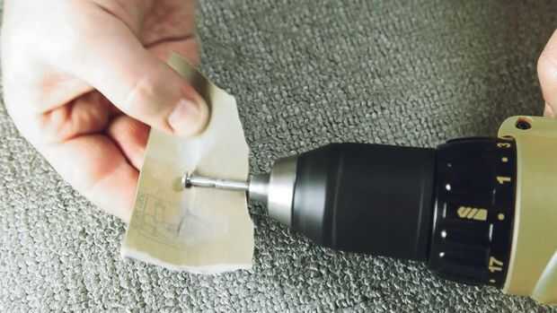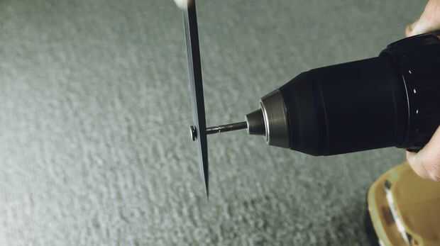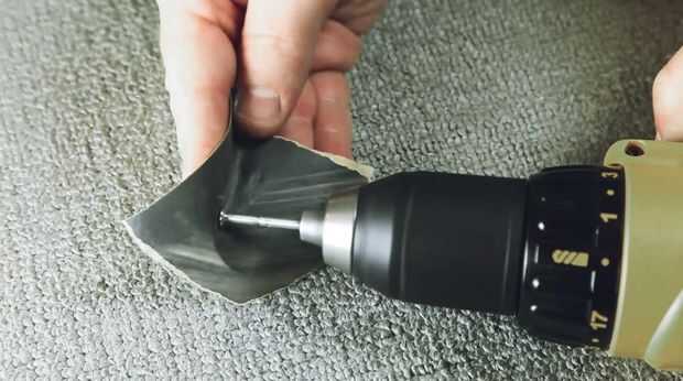Primero tenemos que hacer un agujero en el clavo para el futuro protector de la manija. Me fijo el clavo en el yunque con la llave de fijación con abrazadera y había marcado el agujero con un punzón. Cuando perforé el agujero con una broca de 1/16.