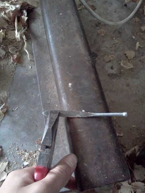 2) martillo de ambos lados en todas direcciones, de lo contrario que puede terminar el clavo doblado (golpea en un ángulo).