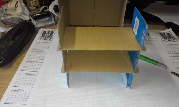 el proyecto debe ser muy rápido para cortar y armar con cartón de desecho si haces los dobleces adecuadamente y también si recibe la orden de operaciones adecuado.  La primera vez que hice esto, las piezas de cartulina endebles tiene clase de wily du
