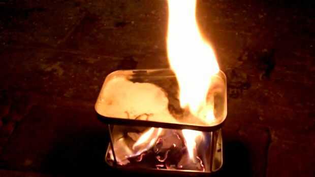 Mini estufa o fuego hoyo usando desinfectante de la mano