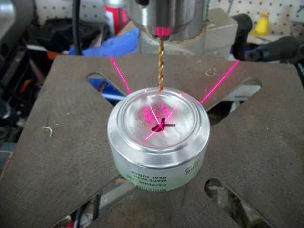 Conseguir una mitad de la lata y marca el centro. Ahora utilizar un taladro o clavo para perforar un agujero en el centro. Le llene la estufa con combustible a través de este agujero pero permanecerá cubierto mientras que quema. Si quieres tapar el orificio de combustible con un tornillo tenga cuidado el tamaño del agujero para que el tornillo no será demasiado flojo.