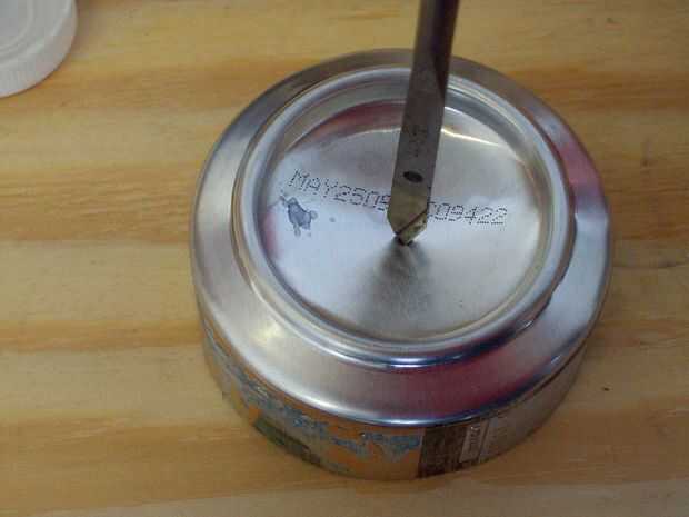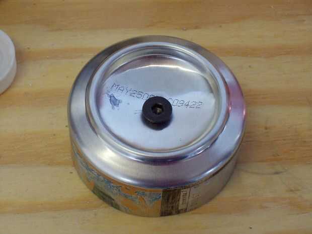 En el centro de la pieza de 30mm, perfore un agujero. Ayuda mucho si haces un pequeño agujero para empezar. Ir poco a poco para evitar que la broca de captura y ripeo el agujero muy grande y destruirlo.